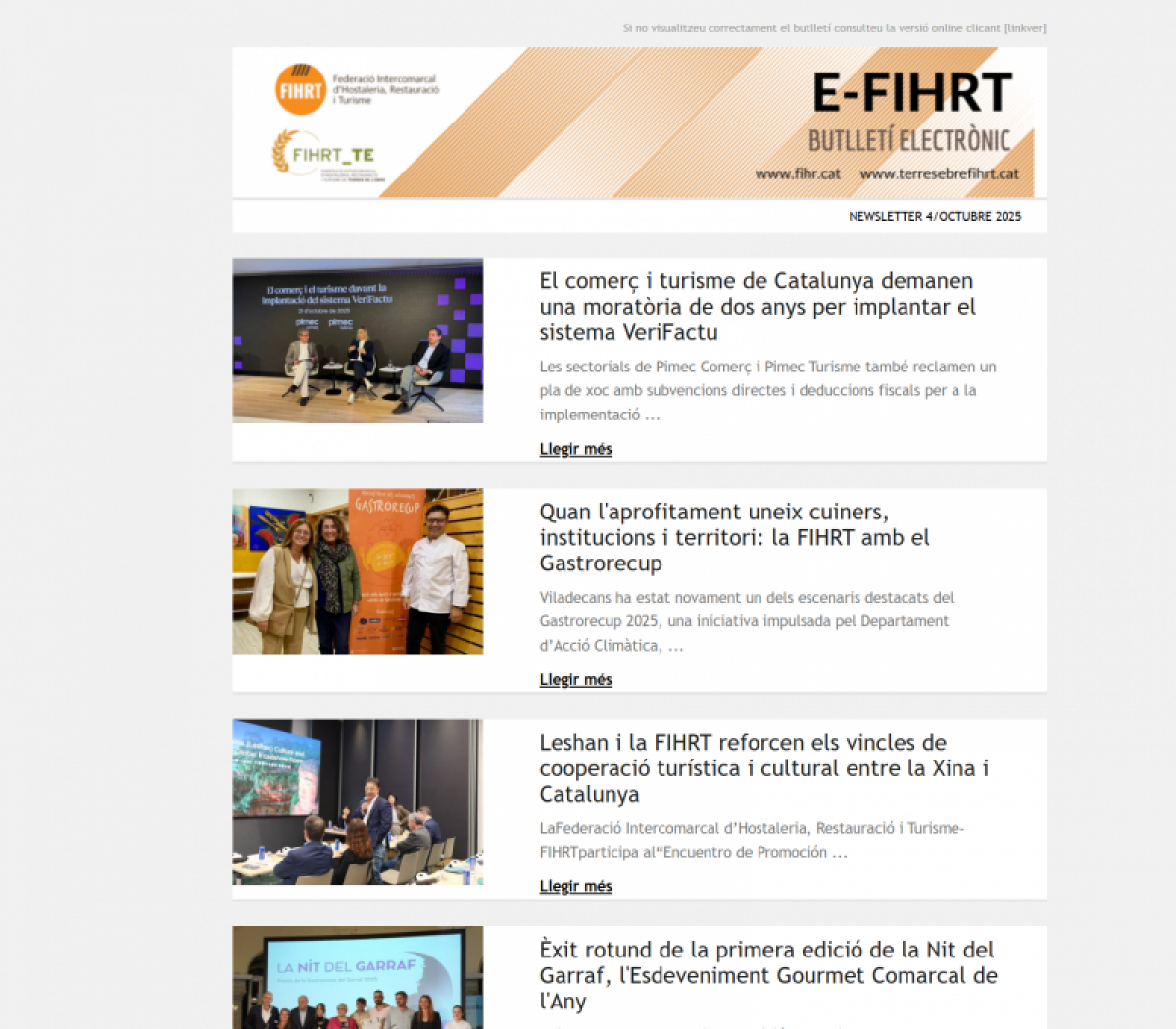L’E-FIHRT de la quarta setmana d'octubre 2025 arriba amb una mirada decididament regenerativa i responsable. El sector de l’hostaleria i el turisme viu un moment de transformació que exigeix accions concretes per fer compatible el progrés econòmic amb la sostenibilitat ambiental, la transparència i la cohesió territorial.