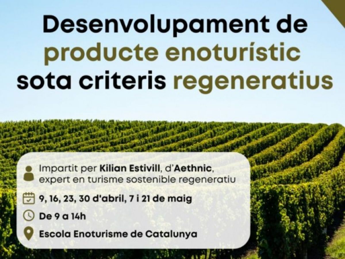L’Escola d’Enoturisme de Catalunya ha obert les inscripcions per a un nou curs especialitzat en el desenvolupament de productes enoturístics sota criteris regeneratius, una proposta formativa que busca impulsar un canvi de paradigma en el sector vitivinícola i turístic.
