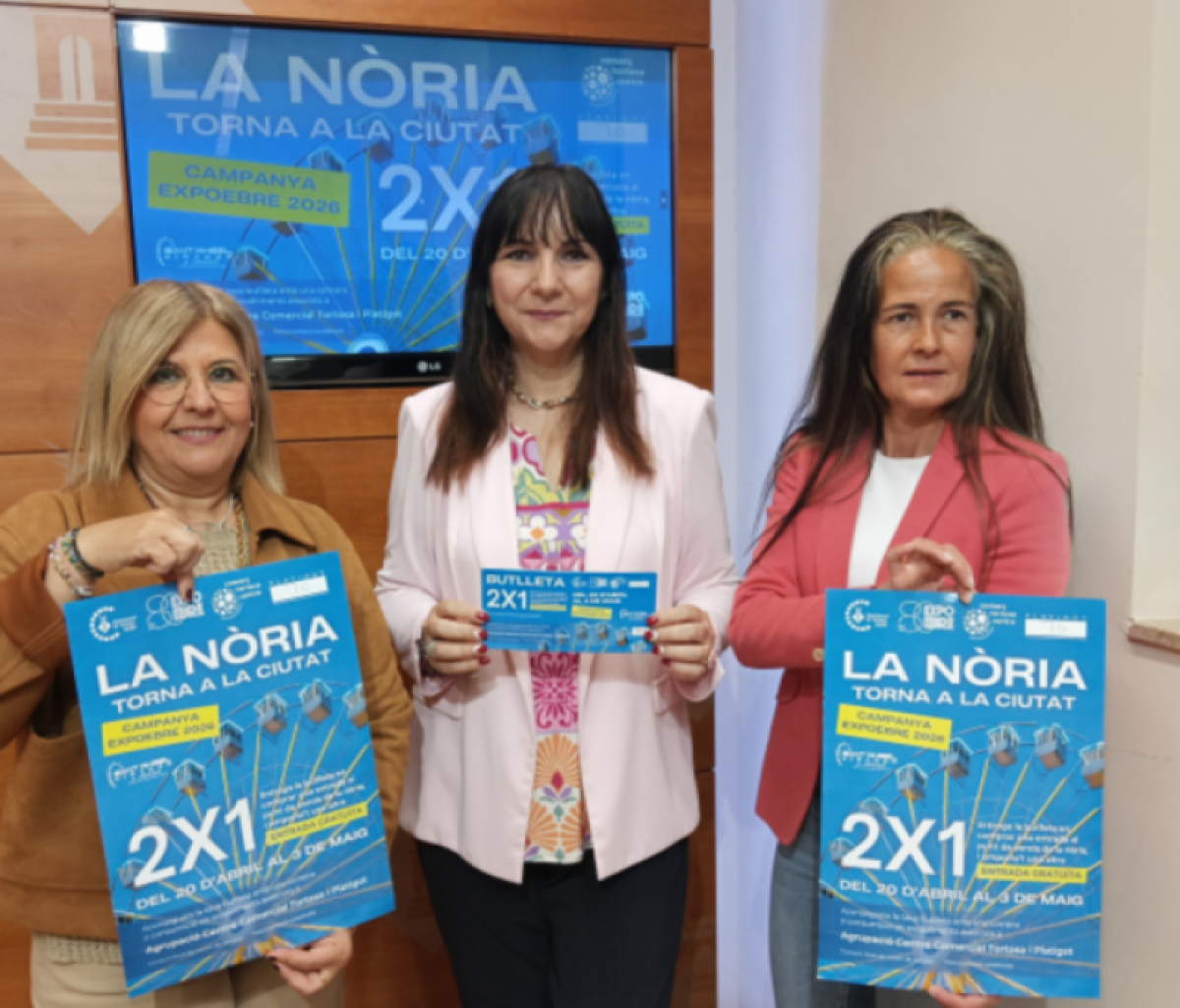 La 80a edició de la fira multisectorial ExpoEbre, que enguany serà del 30 d'abril al 3 de maig, tornarà a comptar amb la roda de fira gegant, una de les atraccions més altes de l'Estat. Així ho ha confirmat avui la regidora de Fires, Sònia Rupérez, qui ha comparegut amb les presidentes de l’agrupació Comerç Tortosa Centre i de Platigot, Maria José Ferré i Joana Merchán. De fet, les dos entitats col·laboren amb l'Ajuntament amb una acció conjunta per dinamitzar el comerç i la restauració, i per sumar atractius a Tortosa durant l'Expoebre. És per això que a partir del proper dilluns, 20 d'abril, posaran en circulació un total de 3.000 vals 2x1 per gaudir de l'experiència de la roda de fira.
