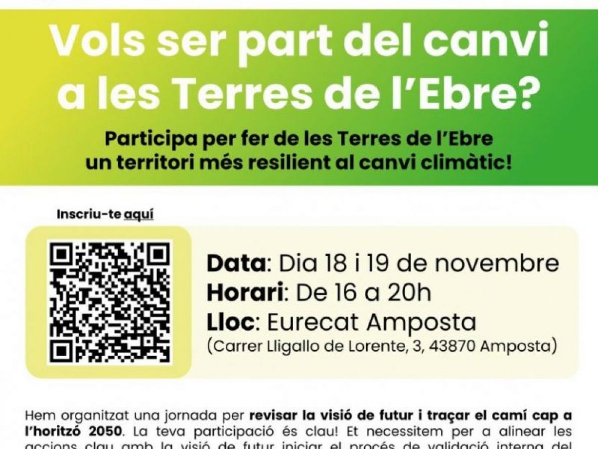 El proper taller se celebrarà els dies 18 i 19 de novembre, de 16 a 20 h, a la seu d’Eurecat Amposta (Carrer Lligallo de Lorente, 3). Aquesta nova sessió servirà per consolidar la visió de futur compartida i prioritzar accions transformadores amb impacte real al territori.