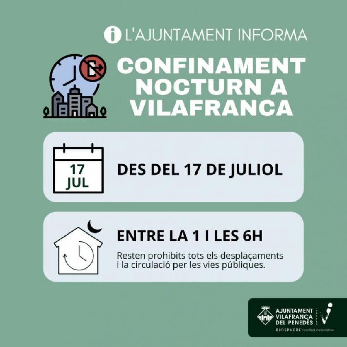 Després de l’aval rebut del Tribunal Superior de Justícia de Catalunya, Vilafranca del Penedès serà un dels 161 municipis catalans que estaran sota confinament nocturn entre les 01 i les 06 hores.