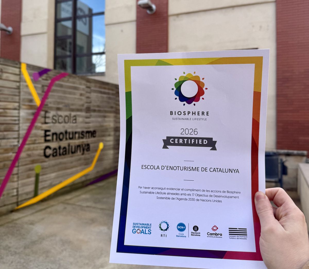 El centre especialitzat en enoturisme està certificat amb el segell Biosphere des de 2021 i manté per al curs 2025/2026 el seu compromís amb els sistemes de qualitat, incloent-hi la certificació Biosphere. Aquesta renovació consolida una trajectòria sostinguda en la integració de criteris de sostenibilitat en la gestió, la formació i la relació amb el sector.