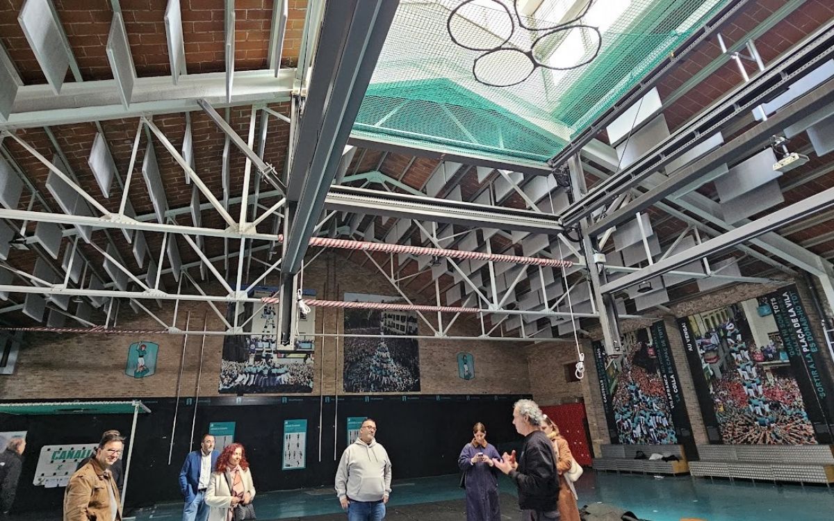 Durant el recorregut per les instal·lacions, vam poder descobrir aquest espai singular, format per un edifici neogòtic de finals del segle XIX i una gran nau annexa adaptada per a l’activitat castellera, que constitueixen el centre neuràlgic de la colla . Cal Figarot no és només una seu: és un espai viu, on conviuen assaig, organització, convivència i transmissió de coneixement.