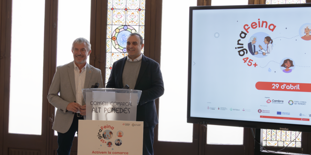 Vilafranca del Penedès acollirà el pròxim 29 d’abril la primera edició de la jornada de l’ocupació GiraFeina +45 | Activem la comarca, que tindrà lloc al centre cultural Cal Figarot. La jornada vol posar en valor el talent sènior i connectar empreses del territori amb persones majors de 45 anys que busquen feina o volen reorientar la seva trajectòria professional.