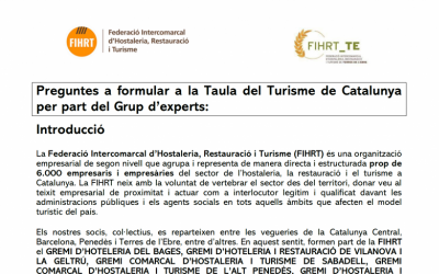 La Federació Intercomarcal d’Hostaleria, Restauració i Turisme (FIHRT) ha presentat les seves aportacions al conjunt de respostes formulades ...